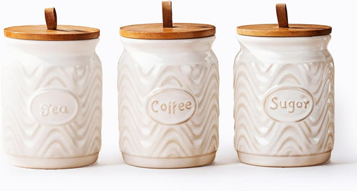 View full detailsHome Harbour Clairmont Ceramic Canister Set – Tea, Coffee & Sugar Storage with Bamboo Airtight Lids